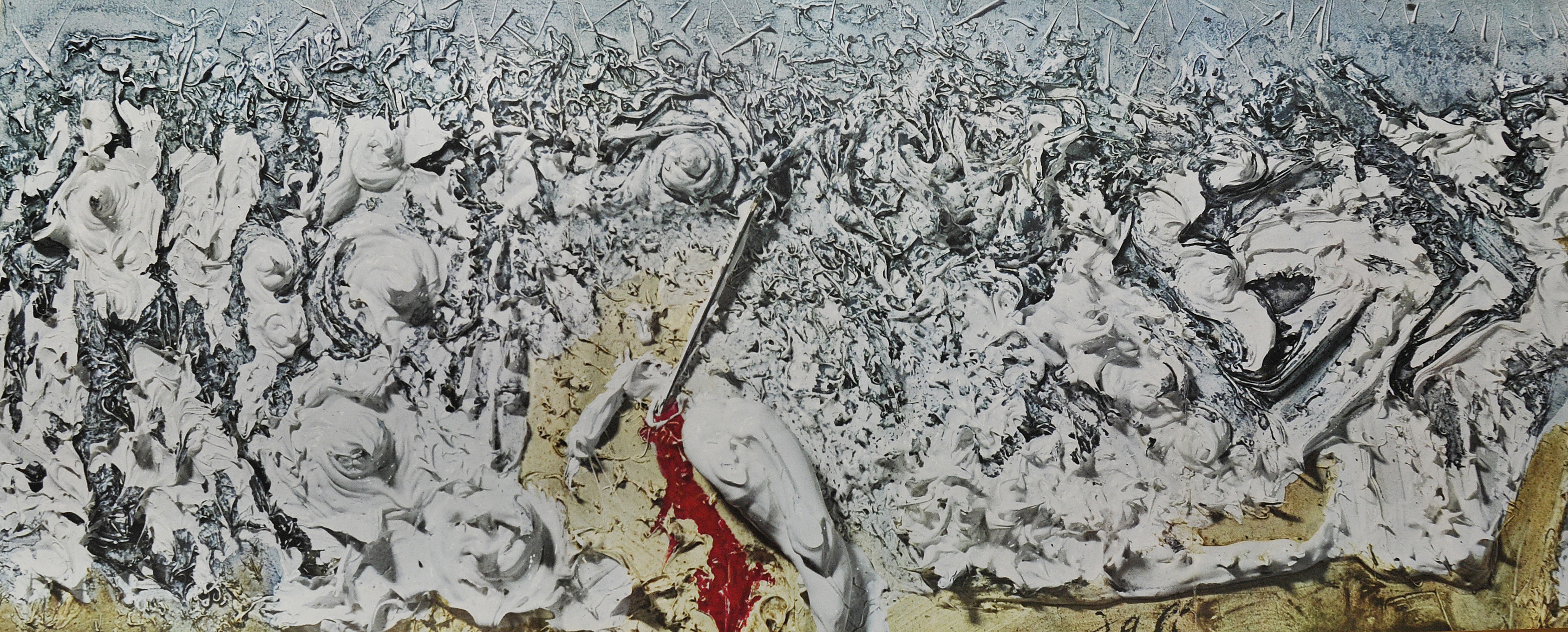 The biomorphic forms in Willem de Kooning’s 1945 work Pink Angels also have their own language but the relationship between the shapes is more primal than Miro’s cartoon-like, brightly coloured party.